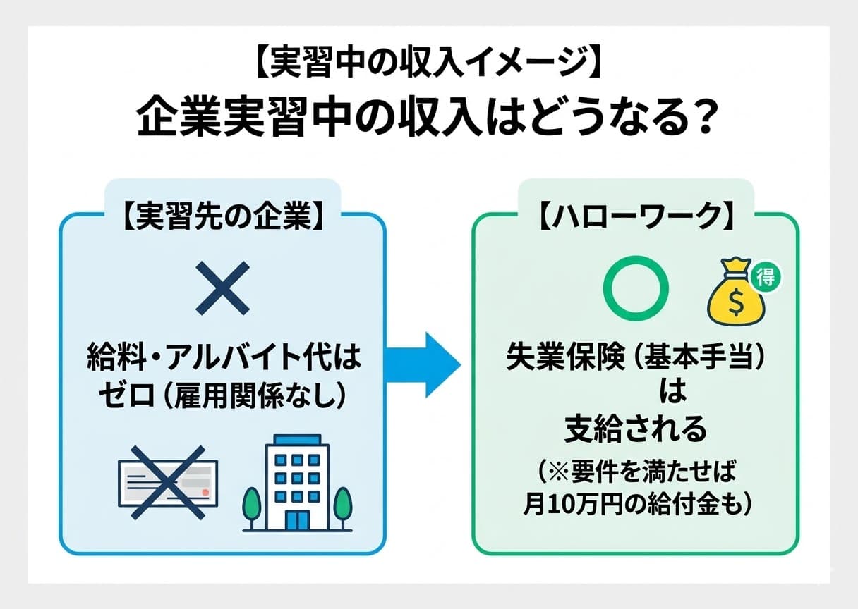 求職者支援訓練の場合は、条件を満たせば職業訓練受講給付金(月10万円)の対象です。「企業から給料は出ないが、公的な支援は受けられる」という点は押さえておきましょう。