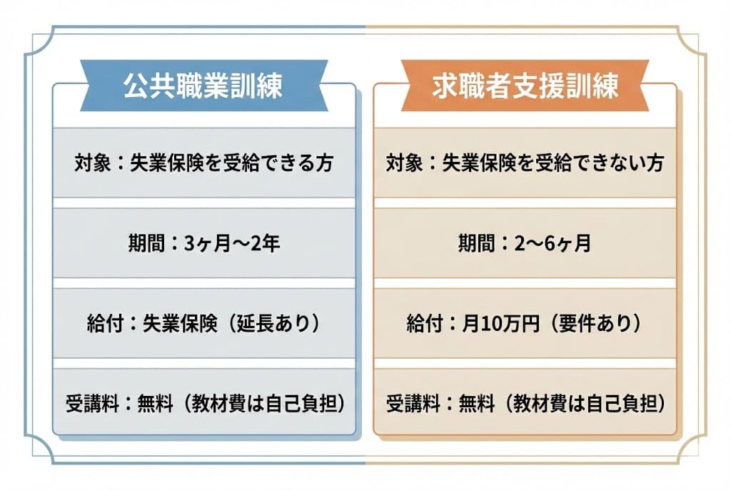 公共職業訓練と求職者支援訓練の違いは何ですか?