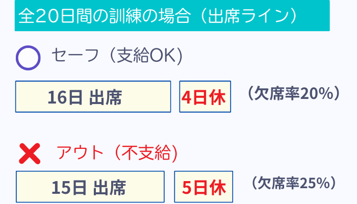 ※ただし、これは給付金計算上の話です。訓練校の修了要件としての出席率計算では厳しく判定されることがあるため、必ず訓練校に確認してください。